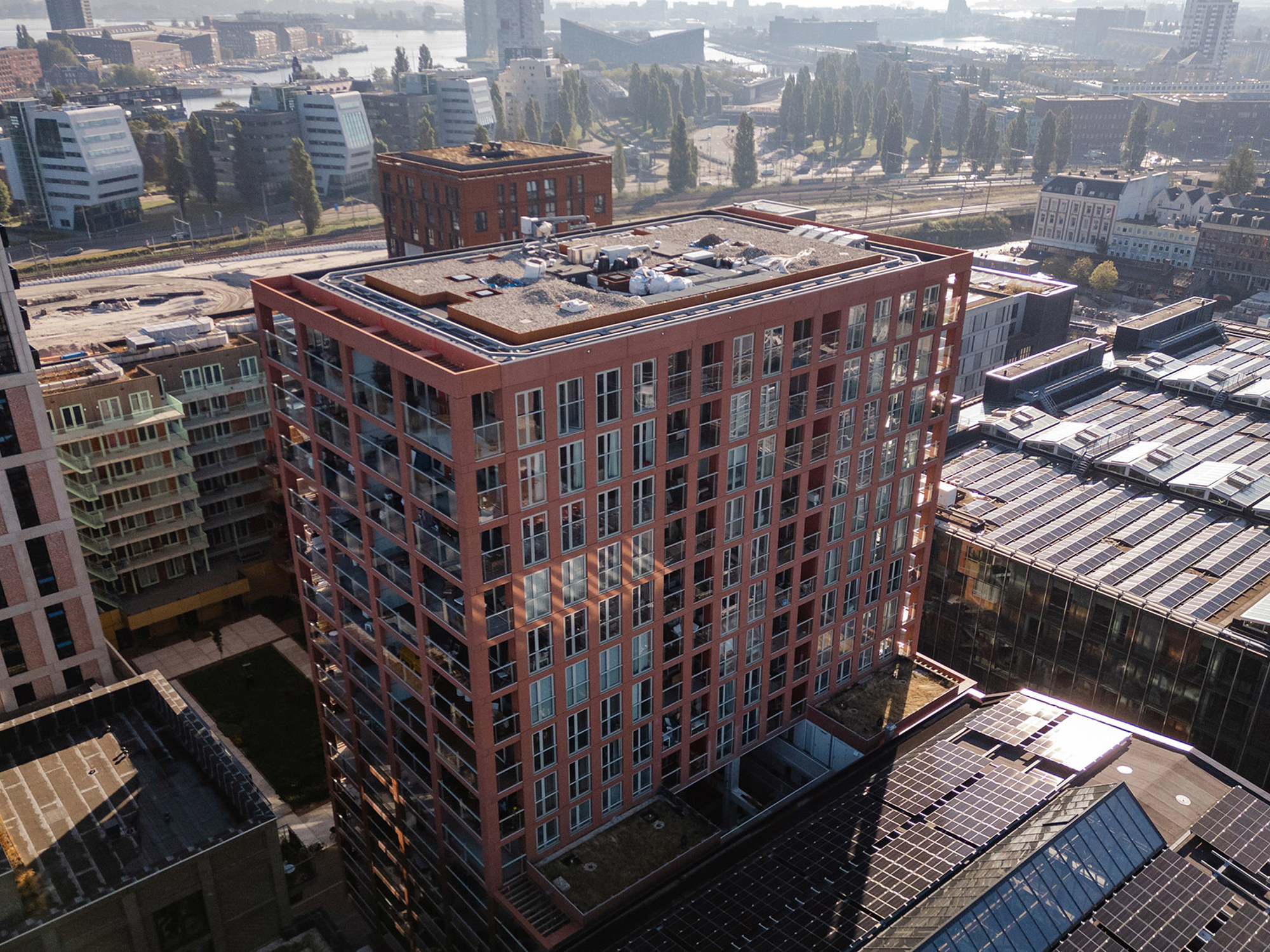 De Prins, met zijn veertien verdiepingen en kenmerkende rode gevel, is een opvallende verschijning op Oostenburg. De appartementen stralen modern design en comfort uit, met duurzame materialen en eigentijdse afwerking. Helemaal wanneer de appartementen deuren van Daloc hebben.