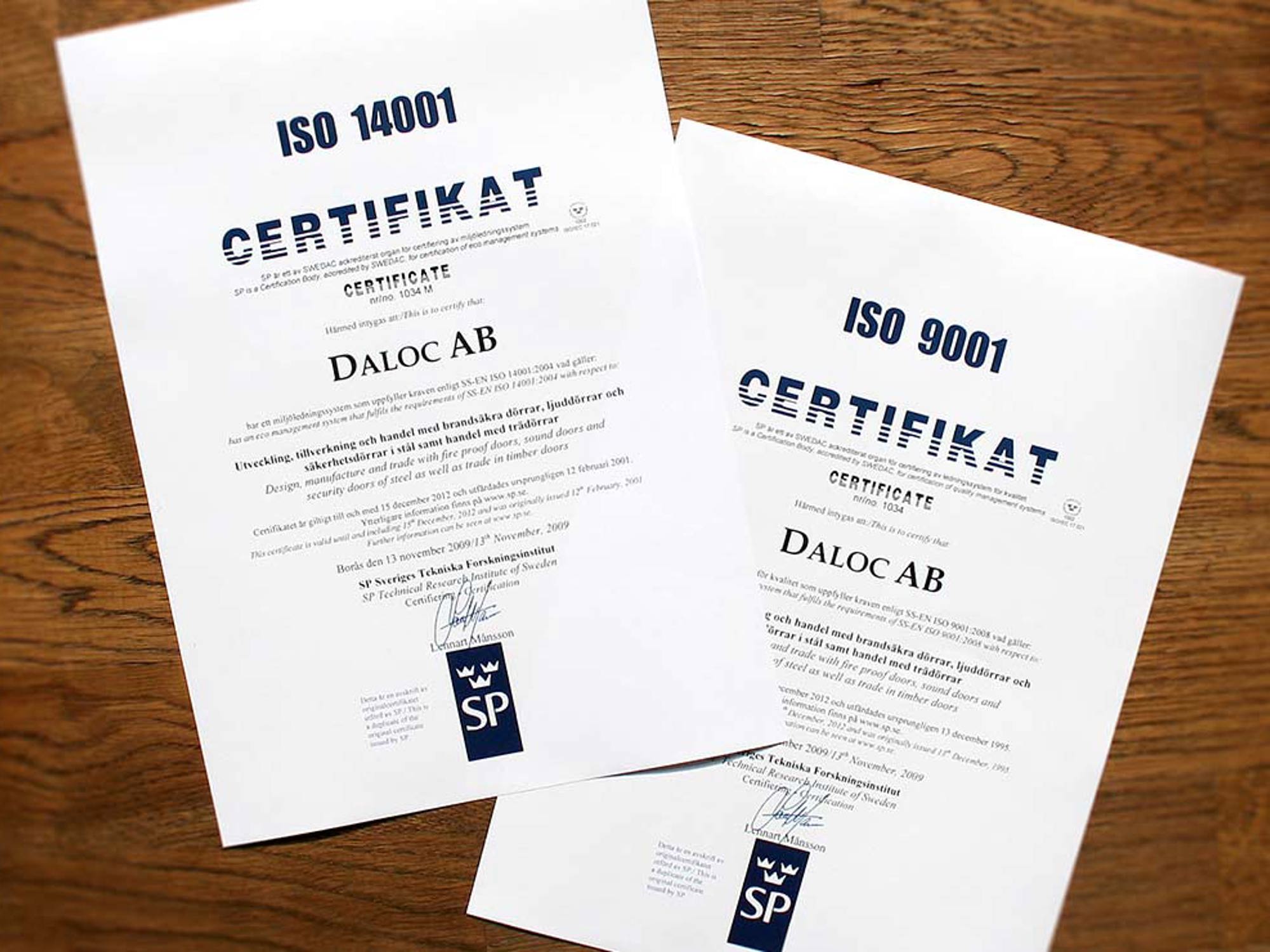 In 1995 wordt Daloc ISO 9001-gecertificeerd, waarna met de voorbereiding voor milieucertificering wordt begonnen. Deze certificering wordt in 2000 voltooid.