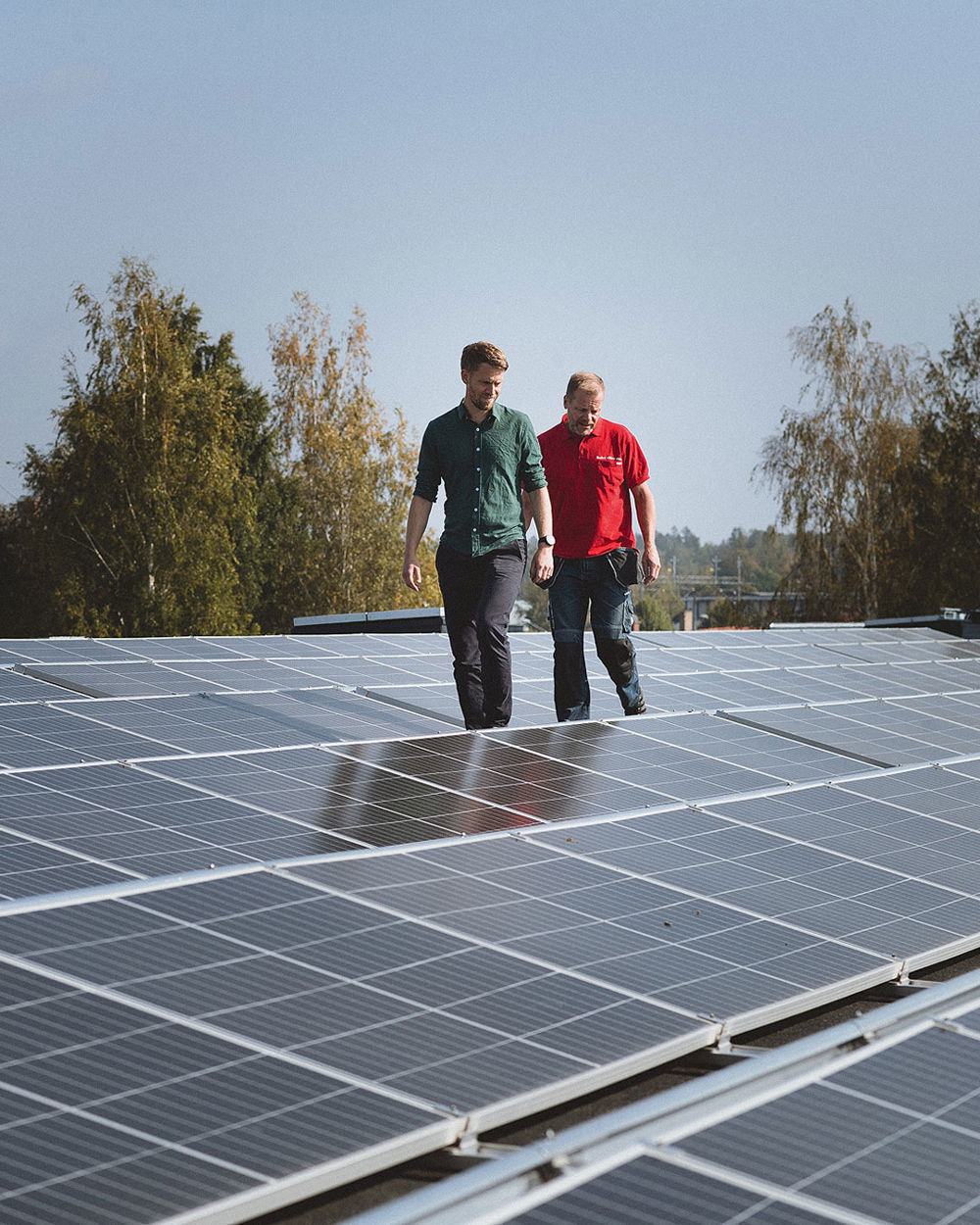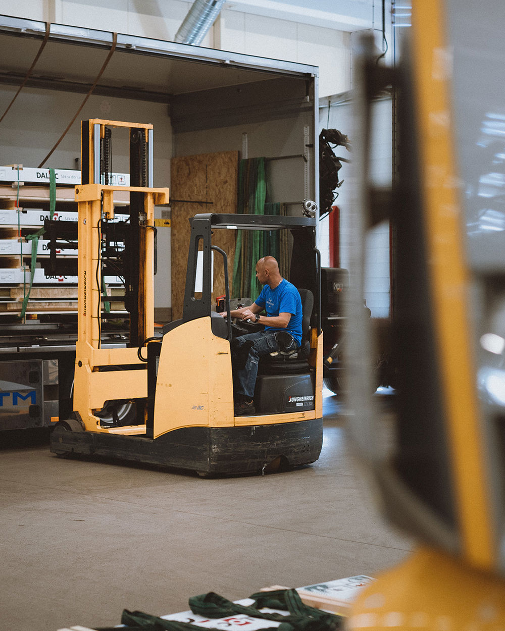 Onze fabrieken en ons hoofdkantoor in Töreboda worden verwarmd met afval van de productie van houten deuren en de zonnepanelen op het dak dragen bij tot onze stroomvoorziening. De resterende stroom die we nodig hebben, is voor 100% afkomstig van hernieuwbare bronnen.